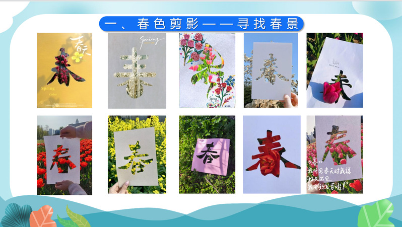 用剪刀在卡纸上裁出“春”字,用相机捕捉春天的瞬间和灵动。“缝中透春色,花香正自浓。”一张张剪影,一份份春意,这一刻花香不仅透过了剪影,也透出了屏幕。