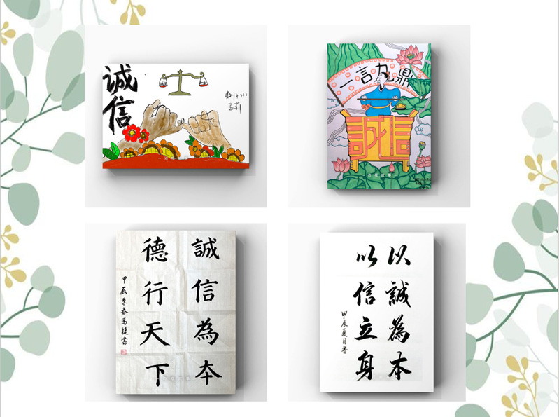 学生热情高涨,纷纷展示自己的才华。在绘画区,学生们用画笔描绘出他们对诚信的理解;在书法区,书法家们挥毫泼墨,用笔墨诠释诚信的内涵;在征文区,学生们用文字记录自己或他人的诚信故事,传递出诚信的温暖和力量。此次诚信主题作品活动让同学们感悟诚信的品质与表现,怀着诚实不欺的心并付诸实践行动。