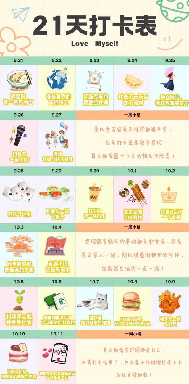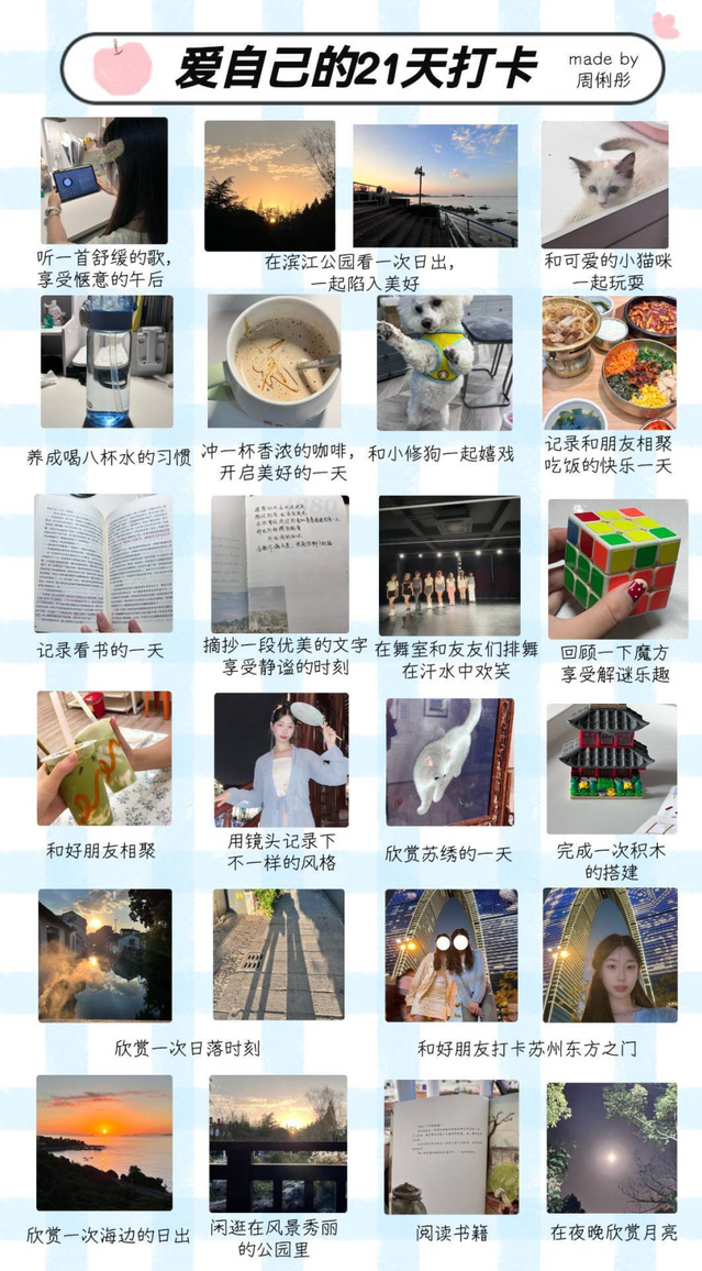 为帮助同学们培养良好习惯,提升自我素养,数统院心协于举办“21 天养成一个好习惯”活动。通过 21 天的持续努力,同学们将积极的行为转化为习惯,塑造更好的自己。