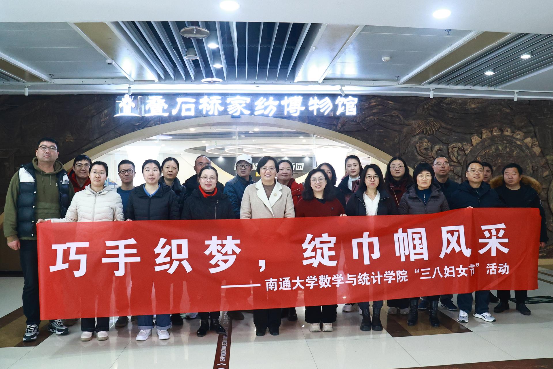 为庆祝第115个"三八"国际劳动妇女节,丰富女教职工精神文化生活,3月5日下午,我院工会组织学院教师赴海门叠石桥国际家纺城开展"巧手织梦 绽巾帼风采"主题活动。副校长陈玉娟参加活动,向学院女教师们致以节日的祝福,并鼓励大家立足岗位,奋发有为,用实际行动诠释巾帼新担当。