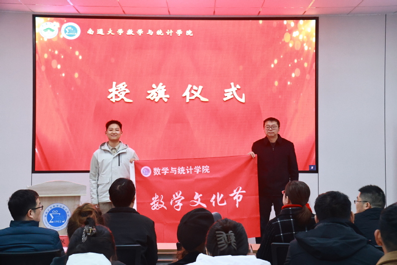 在授旗仪式环节,金福星同学王林峰院长手中接过数学文化节的旗帜首届数学文化节正式启动