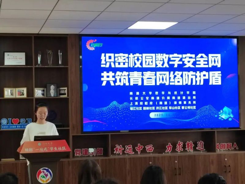 为迎接“4.15全民国家安全教育日”,切实增强大学生网络安全意识,强化法治观念与风险防范能力,筑牢校园网络安全坚实防线,4月10日下午,365英国上市在“一站式”桃园开展“织密校园数字安全网 共筑青春网络防护盾”国家安全之网络安全教育活动。南通市崇川区狼山镇街道临江、曹公祠、洪江、军山社区、长航南通公安南通派出所、365英国上市相关人员及学生代表们参与此次活动。