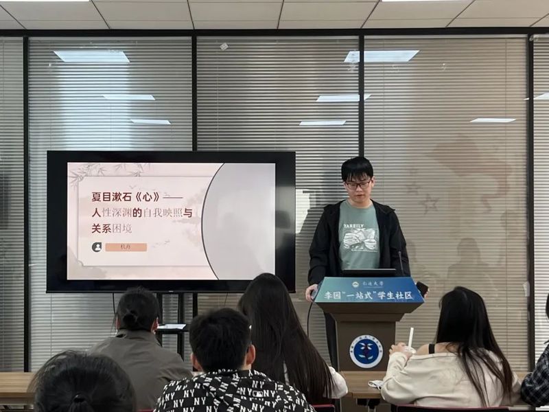 活动在主持人的开场中拉开帷幕,参赛选手们按照抽签顺序依次登台,通过精心制作的PPT展示,带领观众开启了一场横跨古今东西的文化之旅。从夏目漱石《心》中人性幽微的深刻剖析,到史铁生在《我与地坛》展现的生命坚韧;从《被讨厌的勇气》里直面自我的哲学思考,到《汪曾祺散文集》中流淌的生活雅趣;从《论语》的千年智慧到《红星照耀中国》的革命豪情,再到《肖申克的救赎》诠释的自由真谛。每一部经典都如同打开新世界的钥匙,选手们以青年视角解读人文经典,既有《傲慢与偏见》的现代诠释,也不乏对《我心归处是敦煌》中樊锦诗女士坚守精神的崇高礼赞,更透过《晚熟的人》洞见时代变迁中的人性光辉。