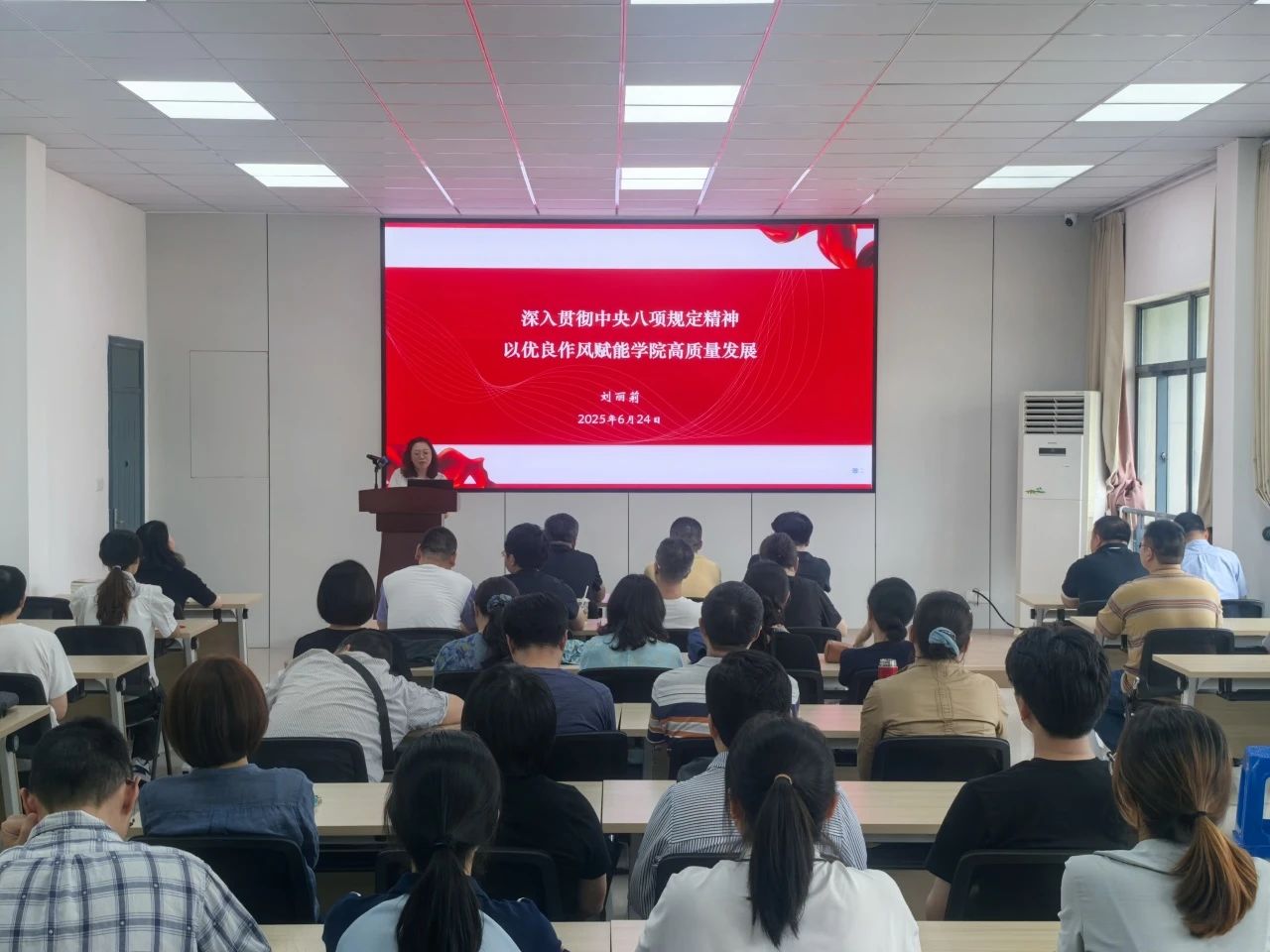 学院党总支书记刘丽莉以“深入贯彻中央八项规定精神 以优良作风赋能学院高质量发展”为主题作专题党课报告,围绕“从总书记用典感悟作风建设的鉴古知今之道”、“从党的百年征程中领悟作风建设的核心要义”、“驰而不息以优良的作风护航学院高质量发展”三个方面进行阐述。她强调,党员教师要深入贯彻中央八项规定精神,以优良作风为引擎,在立德树人上展现新气象、在科研创新上实现新突破、在学科建设上构筑新优势、在人才队伍上激发新活力、在内部治理上提升新效能,争做敢于担当、无私奉献、顾全大局的表率,为学院的高质量发展贡献智慧和力量。