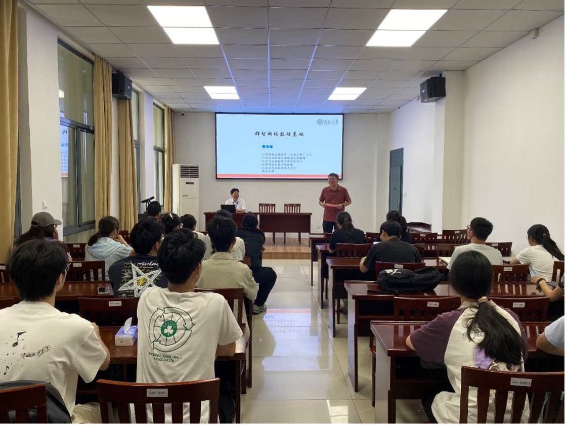 群智网络作为融合系统科学、复杂网络与人工智能的前沿交叉领域,其核心数理基础的构建是当前研究的关键难点与热点。曹进德教授系统梳理了群智网络建模的理论框架,深入探讨了群体智能涌现背后的动力学机制、网络拓扑结构与信息传播模式的数理关联。报告重点剖析了群体动力学模型、网络结构约束下的分布式决策算法及系统鲁棒性与稳定性等核心数理问题。在互动环节,与会师生围绕群体共识形成的数学条件、群智网络在无人集群协同及社会舆情演化等具体领域的应用问题,与曹进德教授展开了热烈而富有成效的讨论。现场学术氛围浓厚,掌声不断。