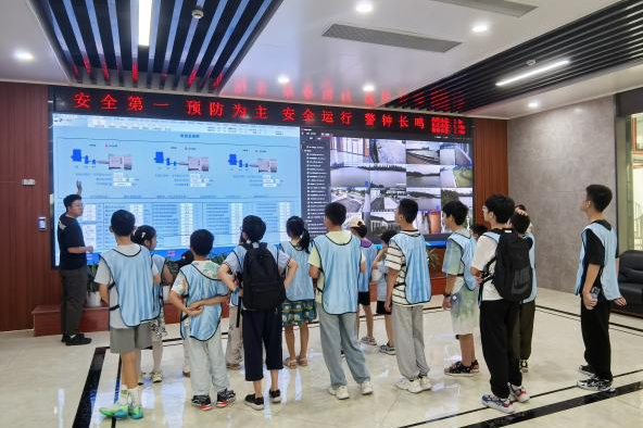 开展水知识讲座、参观通吕闸、通吕泵站工程、安全体验馆等,通吕运河水利枢纽的实地考察更是让孩子们大呼过瘾。通过学习大数据平台系统展示区巨大电子屏幕上实时跳动的水位高度、水流速度、水质指标等数据,孩子们初步清晰了闸站如何通过精准控制水位实现防洪、排涝、灌溉等功能。老师们现场演示无人机航道巡检,对水利枢纽进行智能化管理和调度。孩子们尝试操作简单的数据分析程序,过了一把“水利指挥官”的瘾,小脸上写满了自豪。