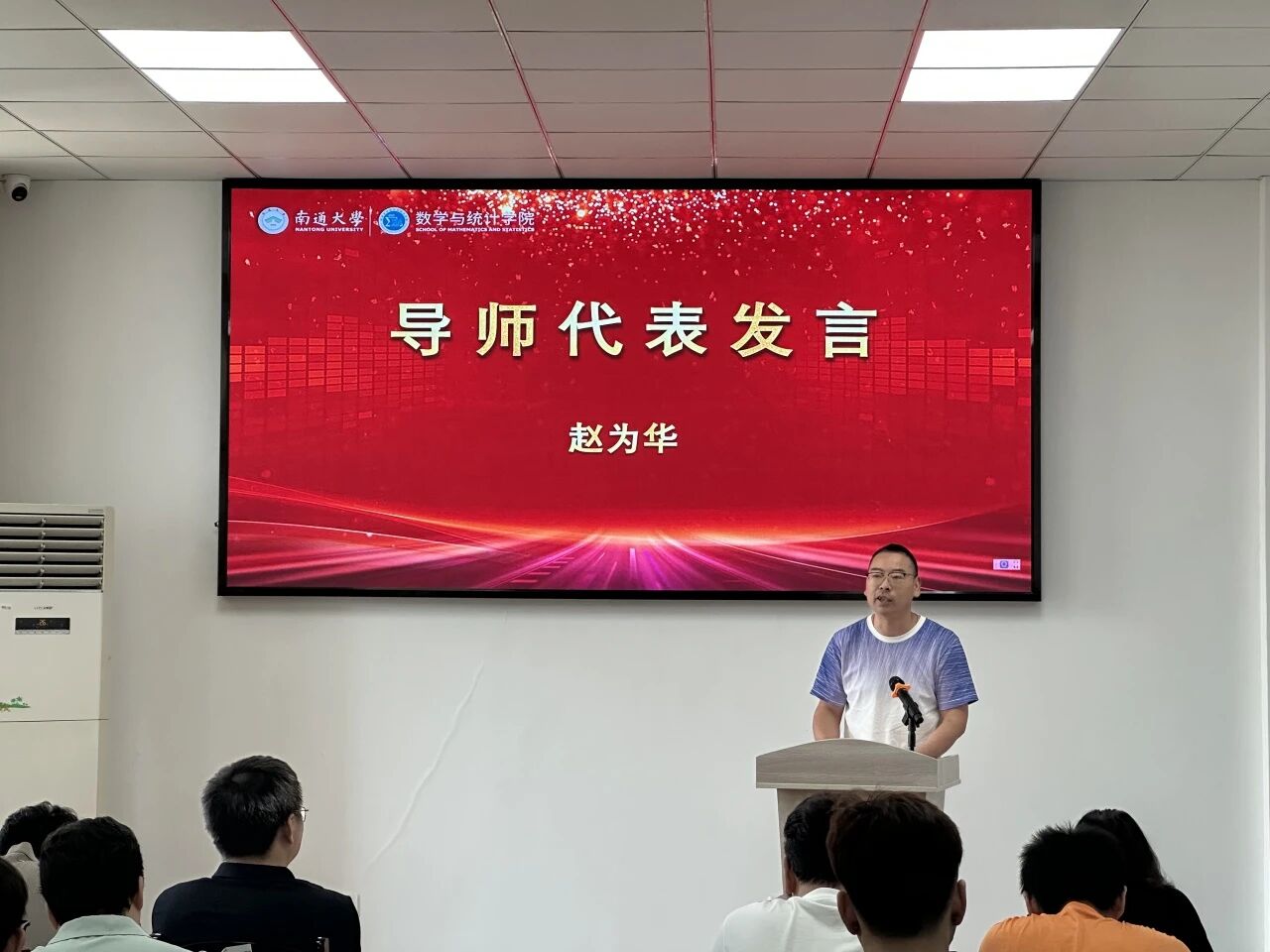 导师代表赵为华教授结合多年教学科研经验,以“好奇、坚韧、心怀梦想”为关键词,对新生提出希望。他指出,好奇心是叩开科研大门的钥匙,唯有对数学猜想、复杂公式保持 “为什么” 的追问,才能捕捉有价值的研究问题;坚韧是突破科研困境的底气,他鼓励新生直面 “卡壳” 与挫折,在试错中逼近真理;梦想是支撑学术长远的动力,数学作为基础学科关乎科技进步,希望新生将个人研究与学科发展、时代需求相连,让研究生生涯更具价值。