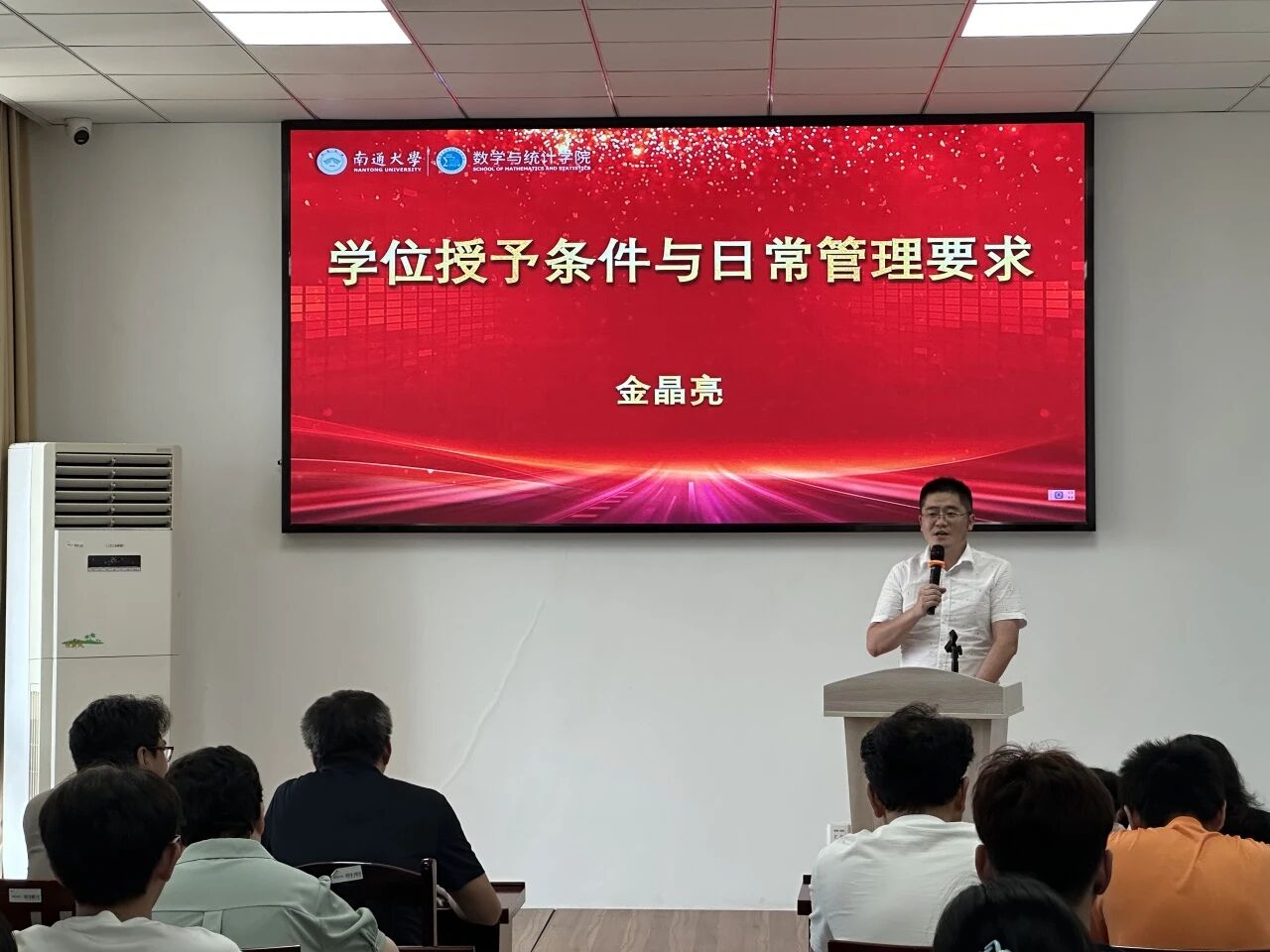 副院长金晶亮为新生们讲解学位授予条件与日常管理要求,详细阐述了在学业、学术规范等方面的准则,帮助新生明确研究生阶段的目标与方向,为他们的学业规划提供了清晰指引。