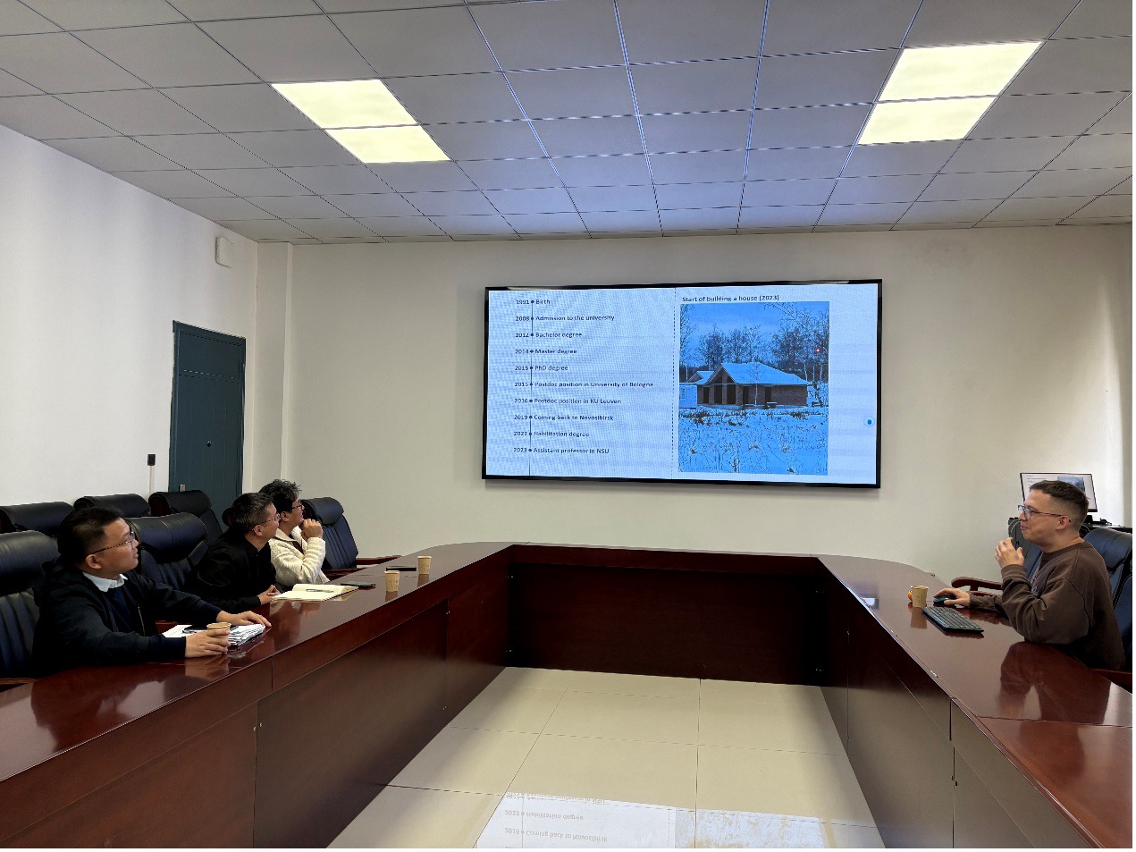Timur Nasybullov教授介绍了具有可解加群的斜Brace方面研究的一些最新进展,重要研究课题以及研究趋势等方面内容。此外,报告会中也就学院的学科建设、人才工作等方面进行了讨论。Timur Nasybullov教授畅谈了如何利用学院平台进行科研、引进人才、培养团队的未来工作计划。王林峰表示学院将会对各类优秀人才在办公条件、生活安排等方面给予最大力度支持。Timur Nasybullov教授感谢学院所提供办公条件以及在生活方面的悉心帮助,对学校及学院服务人才的政策表示赞赏。