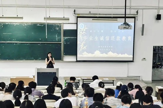面向即将离校的助学贷款毕业生,学院开展“诚信还款 感恩社会”专题教育,强化学生履约践诺的责任意识。活动通过政策宣讲、承诺签署、感恩实践等环节,详细解读助学贷款还款流程与征信政策,结合典型案例警示信用记录的重要性。活动设置“诚信故事墙”与互动展区,鼓励学生书写感恩寄语、体验诚信文化,感悟个人诚信与社会发展的紧密联结。