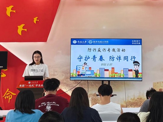 为深入贯彻落实高校法治教育和反诈宣传工作,增强在校大学生对电信网络诈骗的识别能力和自我保护意识,2025年5月27日下午,365英国上市在秀园“一站式”学生社区举办“守护青春,防诈同行”防诈反诈专题活动。