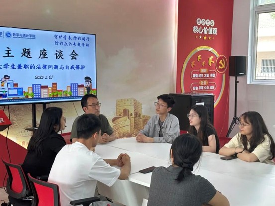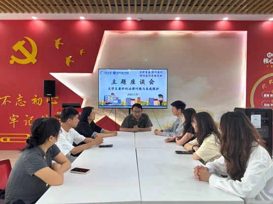 讲座结束后,活动进入“谈谈大学生兼职的法律问题与自我保护”主题座谈会环节。来自不同年级的学生代表结合亲身兼职经历,讲述了自身遭遇或身边发生的兼职陷阱与法律问题,嘉宾们从专业角度进行法律点评与风险分析,为在场学生提供了切实可行的预防与应对建议。