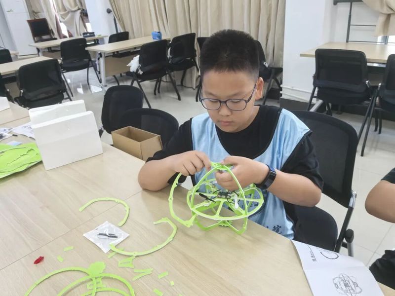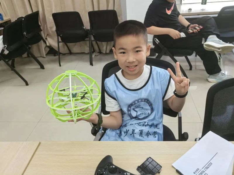 球形无人机组装试飞环节将夏令营活动推向高潮。营员们在技术导师的指导下,亲手拆解、组装球形无人机,深入了解电机、螺旋桨、电路板等核心部件的工作原理。经过近两小时的精密操作,一架架球形无人机顺利完成组装。在室内和户外试飞场,孩子们手持遥控器,成功让自制无人机完成障碍穿越等高难度动作。看着自己的作品翱翔天际,现场不时响起成功完成复杂飞行动作的欢呼声。