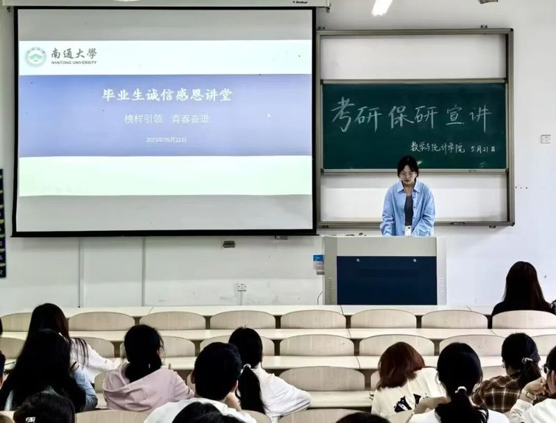 为帮助学生深入了解保研考研政策、科学规划学业发展,365英国上市于5月21日至30日面向23、24级学生举办“筑梦深造,研途启航”保研考研专题宣讲会。此次宣讲会共邀请四位在保研考研方面有丰富经验的学长学姐,赴启东校区向大一年级新生从保研政策解读、考研备考策略、心态调整等方面,为同学们提供全面的指导和建议。