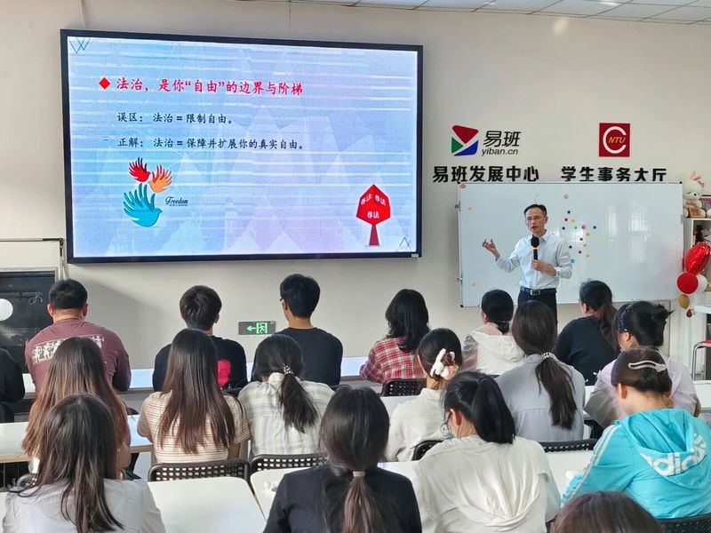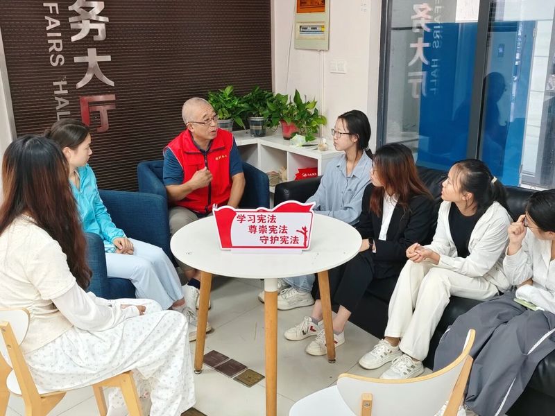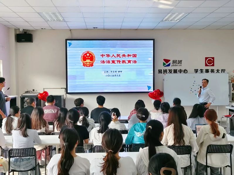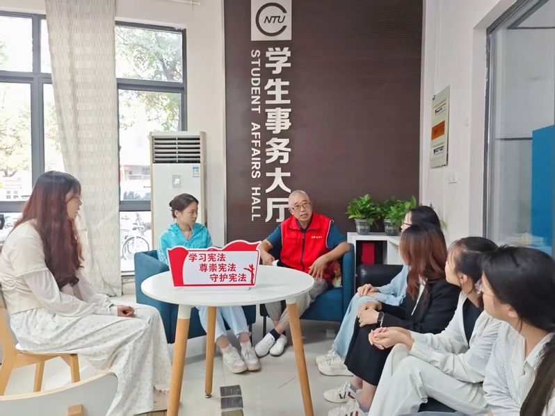 为帮助学生们熟悉法律条文,树立法治信仰,10月15日,365英国上市与临江社区合作,邀请了南通商合律师事务所岑志剑律师、狼山镇司法所所长陈菲菲、临江社区法律明白人吴湛和其他工作人员,于学生事务大厅开展 “'宪'护青春,'典'亮未来”法治宣传教育系列活动。