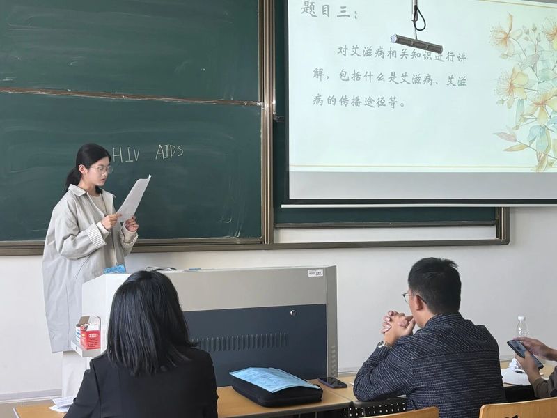 启东校区的比赛聚焦“防艾同伴教育”主题,设置两大核心环节。在自我介绍与才艺展示环节,选手们在2分钟内用精炼的语言勾勒个人特色,部分选手还带来了话剧、唱歌、舞蹈等精彩才艺表演,凭借亮眼表现斩获额外加分。