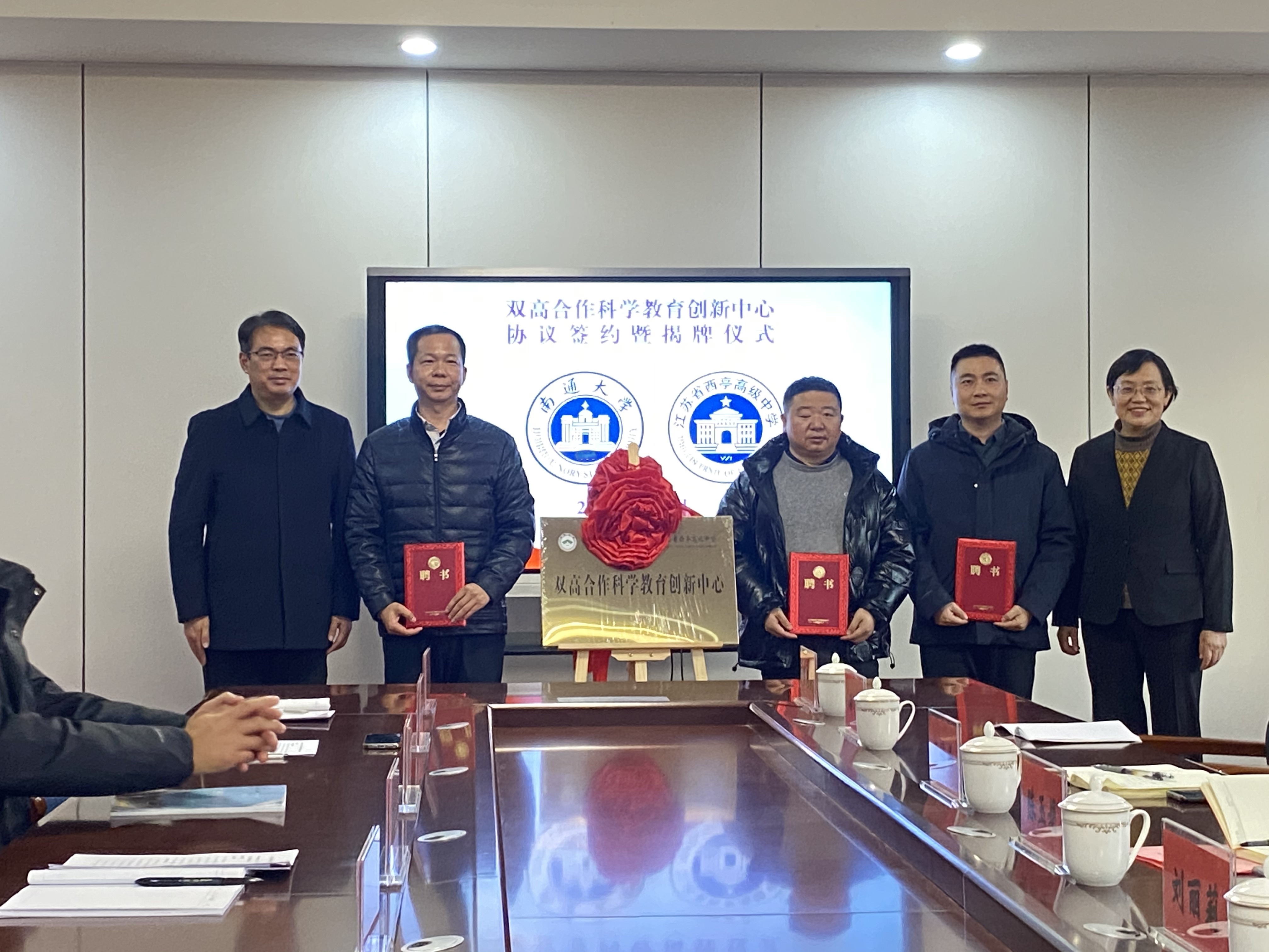365英国上市党总支书记刘丽莉与西亭高级中学副校长金鑫分别代表双方签署了双高合作协议书。陈玉娟副校长与周岗校长共同为“英国上市公司官网365—江苏省西亭高级中学双高合作科学教育创新中心”揭牌,并为首批三位科技导师颁发科技副校长聘书。会前,与会人员一起参观了西亭高级中学校园与校史馆。